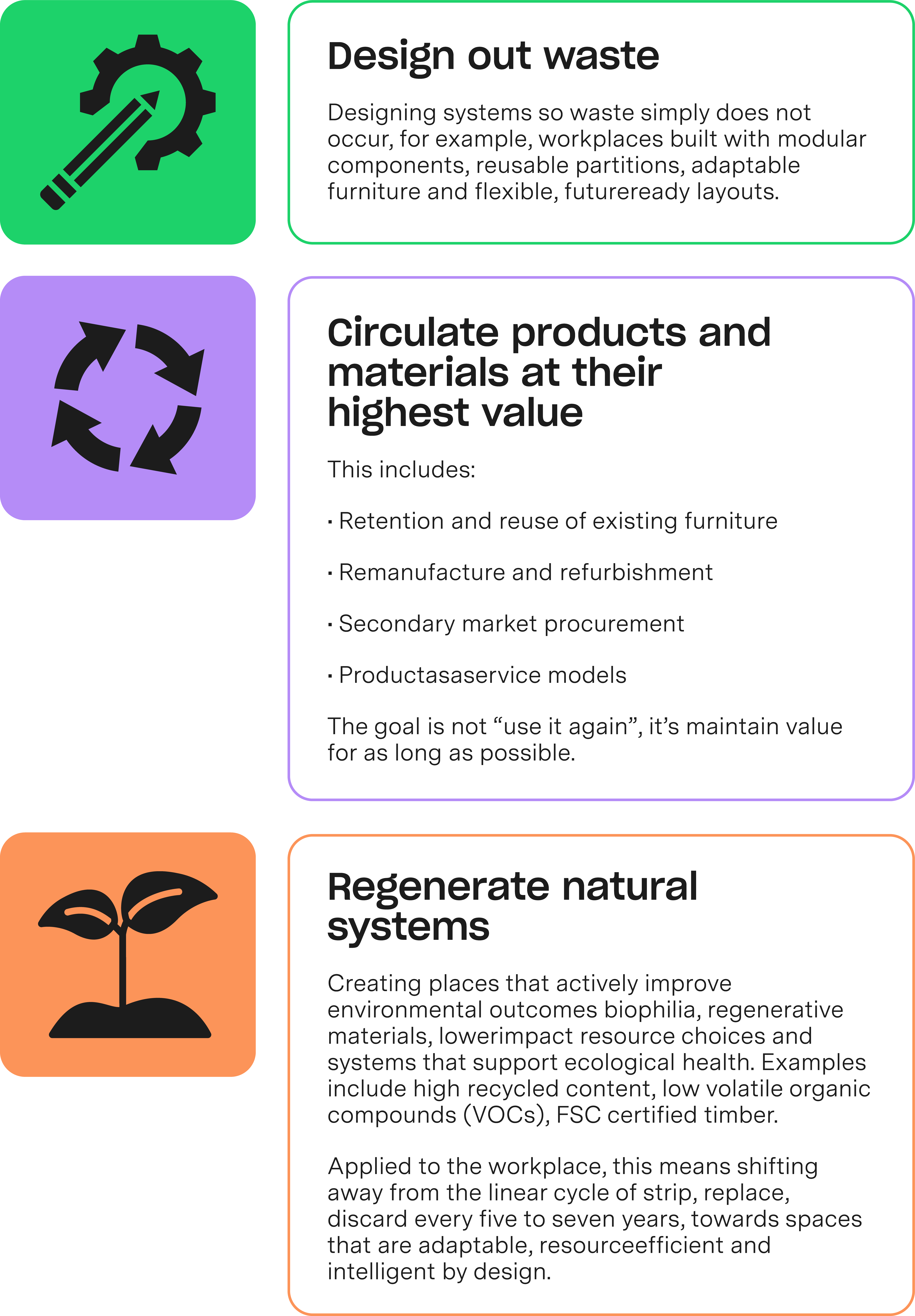 Circularity represents a fundamental shift; rather than making incremental operational changes, it requires rethinking the design, construction, furnishing, upkeep, and renewal of workspaces in alignment with people, place, and planet. For organisations aiming to reduce both embodied and operational carbon emissions, minimise waste, lower costs, and exemplify authentic sustainability-driven leadership, circularity offers some of the most impactful opportunities available.