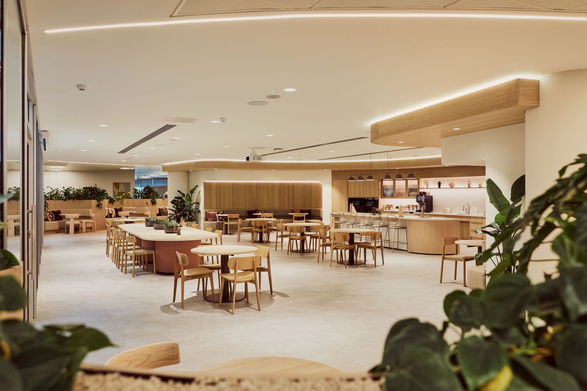 The visual language is warm, confident and calm. Natural textures, soft lighting and hospitality-inspired settings replace corporate sterility with a professional but human feel. Informal lounges and coffee points sit alongside touchdown benches and meeting rooms, so conversation can move easily from quick check-ins to deeper collaboration. This home-like quality reflects leadership intent for a space that feels welcoming without losing the polish expected by clients and partners.